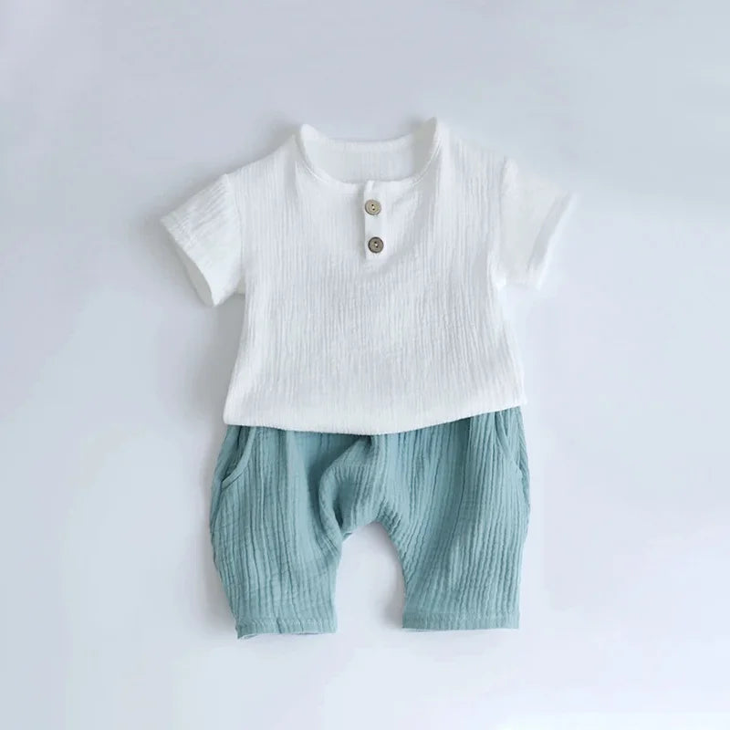 Dress your little one in comfort and style with the NurtureNest 2-Piece Summer Organic Cotton Baby Clothes Set. This adorable set includes a solid color short sleeve top and matching shorts, perfect for keeping toddlers cool and comfortable during warm weather. Made from 100% organic cotton, the outfit is gentle on sensitive skin and breathable for all-day wear.
