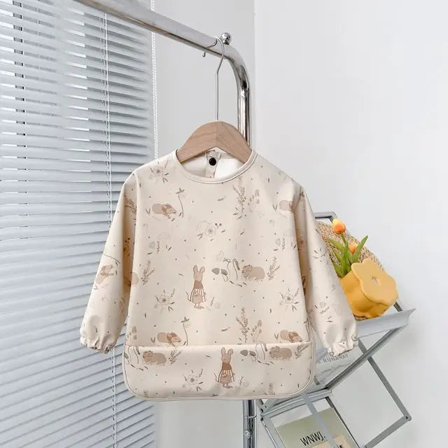 Keep mealtime mess-free and fun with the NurtureNest Baby Waterproof Bib. Designed especially for toddlers, this long sleeve feeding smock offers full coverage protection to keep clothes clean and dry. Made from high-quality, waterproof materials, it’s perfect for babies and toddlers during feeding, painting, or any messy activities.